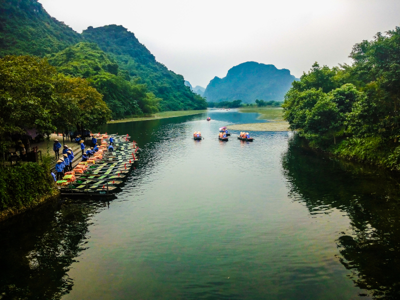 Partenza dal vostro Hotel sicuramente di mattina presto. Arriverete a Tam Coc dopo due ore di viaggio per poi prendere la barca e fare un giro lungo il fiume Ngo Dong e visitare le tre bellissime grotte di Tam Coc. Tornati al porto, potrete prendere le biciclette e visitare i villaggi tradizionali del posto. Un’esperienza veramente unica. Verso le ore dodici, vi accompagneranno a mangiare in uno dei tantissimi ristoranti vietnamiti, solitamente il pranzo dura un’ora, terminato, vi condurranno a visitare l’antica capitale del vietnam, Hoa Lu, suggestiva. Visiterete senza ombra di dubbio il tempio dedicato al Re Dinh e quello del Re Le, entrambi del X secolo. Vedrete le grotte di Mua e terminerete la visita, ammirando il panorama dall’alto (a volte il percorso può essere invertito).