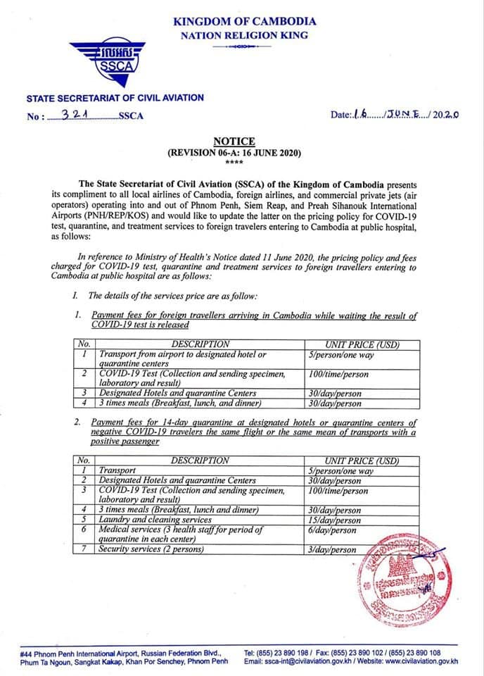 Please find attached the payment fees implemented by the Kingdom of Cambodia for all the foreign nationals intending to enter the country.