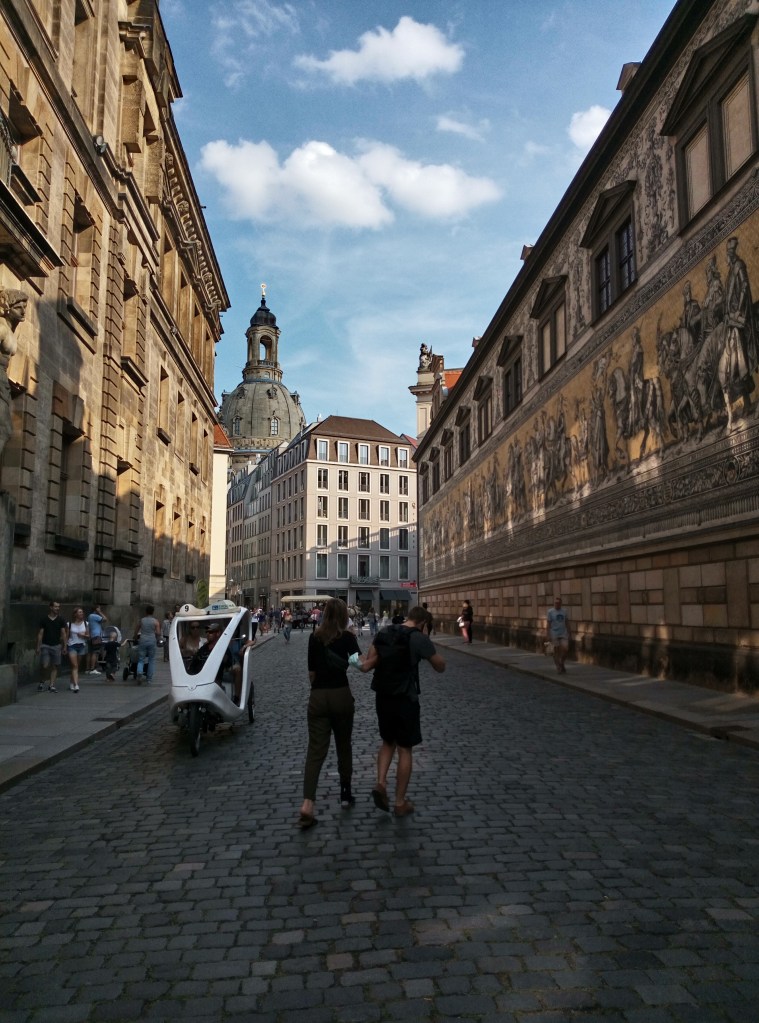 Proprio dietro il Palazzo Reale, il Fürstenzug o Processione dei principi è un murale lungo 101 metri rivestito con porcellane Meissen dove vengono raffigurati i sovrani della Casa di Wettin in una processione a cavallo. Il murales collega piazza Neumarkt e Schlossplatz
