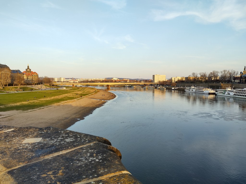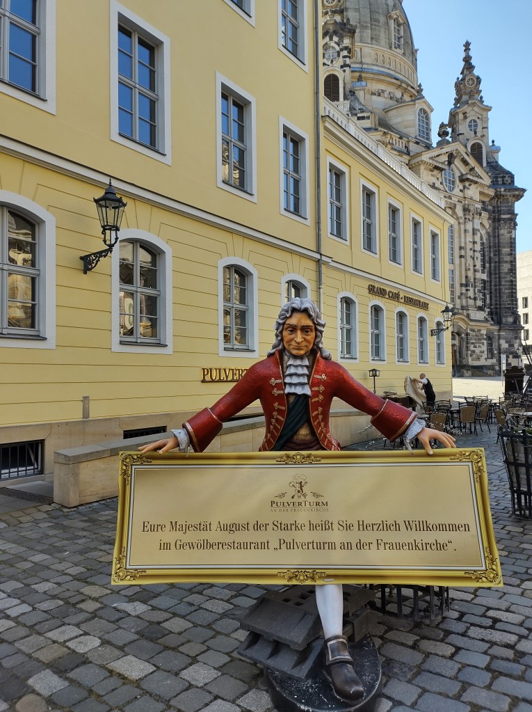 Ai piedi del ponte Augustusbrücke, il Cavaliere d’Oro indica la via per la Neustadt a nord-est del regno di Polonia dove, nel 1697 Augusto il Forte venne incoronato imperatore.