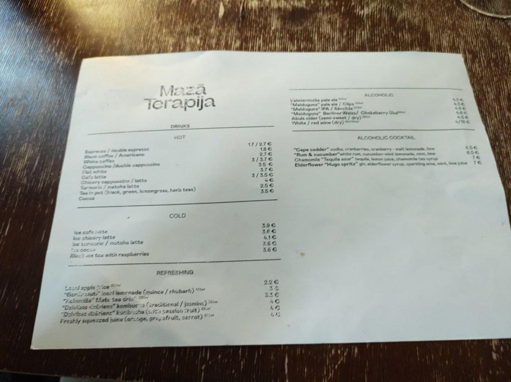 Per arrivarci non devi fare altro che mettere su google Maps la seguente via “Baznicas iela” oppure direttamente il nome del ristorante. La direzione da prendere comunque sia è quella per andare a vedere il Monumento alla Libertà e il Duomo della nascita di Cristo a Riga. Una volta arrivato, non potrai sbagliarti, Il Maza Terapija ha un’insegna nera in legno con la scritta bianca (vedi fotografie).