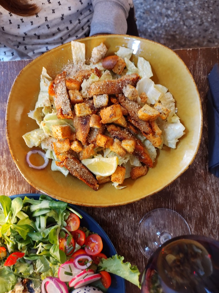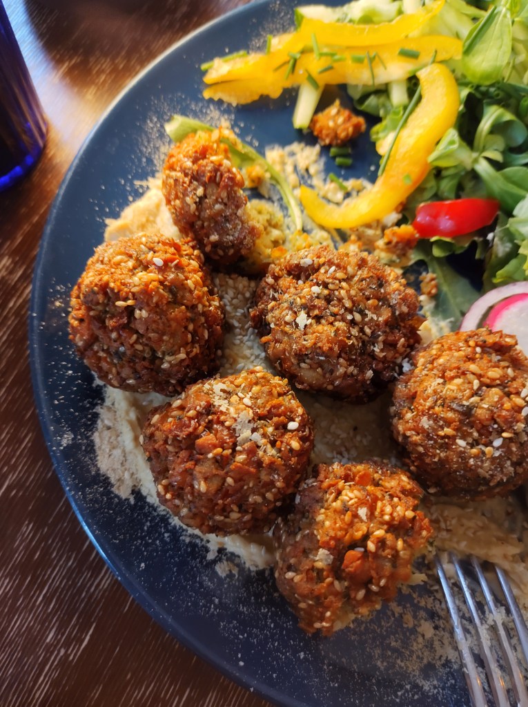 Noi durante le nostre cene abbiamo voluto provare le falafel plate (large), la tempeh salad, jackfruit “cheeseburger”, crunchy tofu burger, mushroom risotto, un dolce al cioccolato e del vino rosso cella casa.