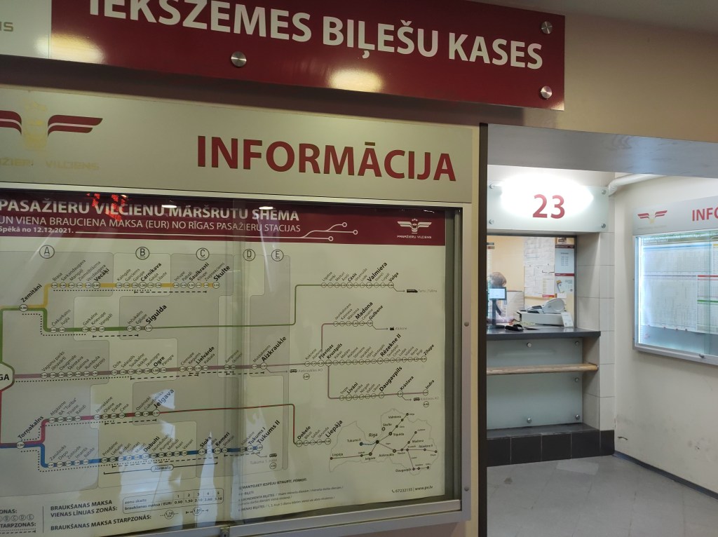 Per prendere i biglietti, come detto a inizio post hai due possibilità, sul sito web delle ferrovie di Riga oppure, agli sportelli che trovi sul lato destro dell’ingresso principale della stazione dove potrai anche chiedere informazioni al personale addetto.