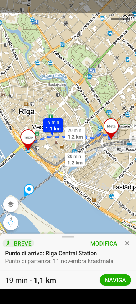 Nota: grazie alla sua posizione centrale, molti mezzi di trasporto pubblici si fermano proprio davanti alla Central Station (Rigas centrala dzelzcela stacija)
