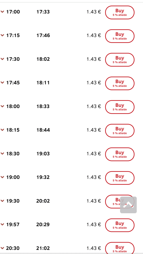 Nella schermata che segue ti compariranno tutti gli orari delle partenze. Come puoi notare, i treni per Majori ci sono ogni 15 minuti e il viaggio dura mediamente 30 minuti.