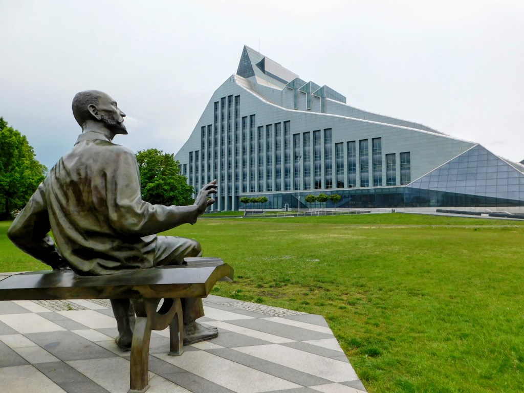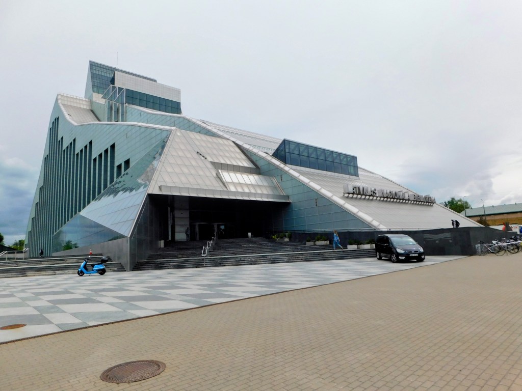 Proprio di fronte alla Vecchia Riga, sulla sponda sinistra del fiume Daugava, puoi trovare il nuovo edificio della Biblioteca Nazionale di Lettonia (LNB). Questo è uno degli edifici culturali più impressionanti costruiti in Lettonia negli ultimi decenni. La nuova biblioteca è un moderno centro informativo e un ampio spazio che ospita eventi culturali e sociali sia per i residenti che per i turisti.