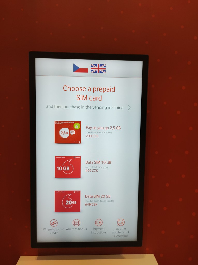 I centri Vodafone a Praga li puoi trovare più o meno da per tutto ma, se non vuoi impazzire a cercarli, ti suggeriamo di recarti in qualche centro commerciale. Se ti trovi nei pressi di Náměstí Republiky, potresti entrare al Palladium, scendere al piano -1, andare verso l’entrata della Metro B e proprio davanti alla macchinetta dove si fanno le fototessere trovi il negozio della Vodafone. Un’altra soluzione che hai, forse la più semplice, è quella di acquistare la tua SIM direttamente in aeroporto. Una volta uscito dalla porta degli arrivi al Terminal 2, restando sempre dentro l’aeroporto, guarda verso la tua sinistra, a pochi metri vedrai un grande stand rosso con la scritta del gestore. Qui puoi prendere la tua scheda a qualsiasi ora del giorno.