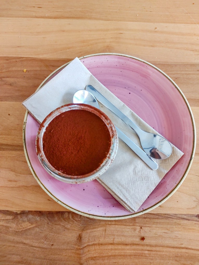 Il tiramisù, fatto in casa e tutto vegano, anche essendo poco dolce, dobbiamo dire che merita veramente cinque stelle.