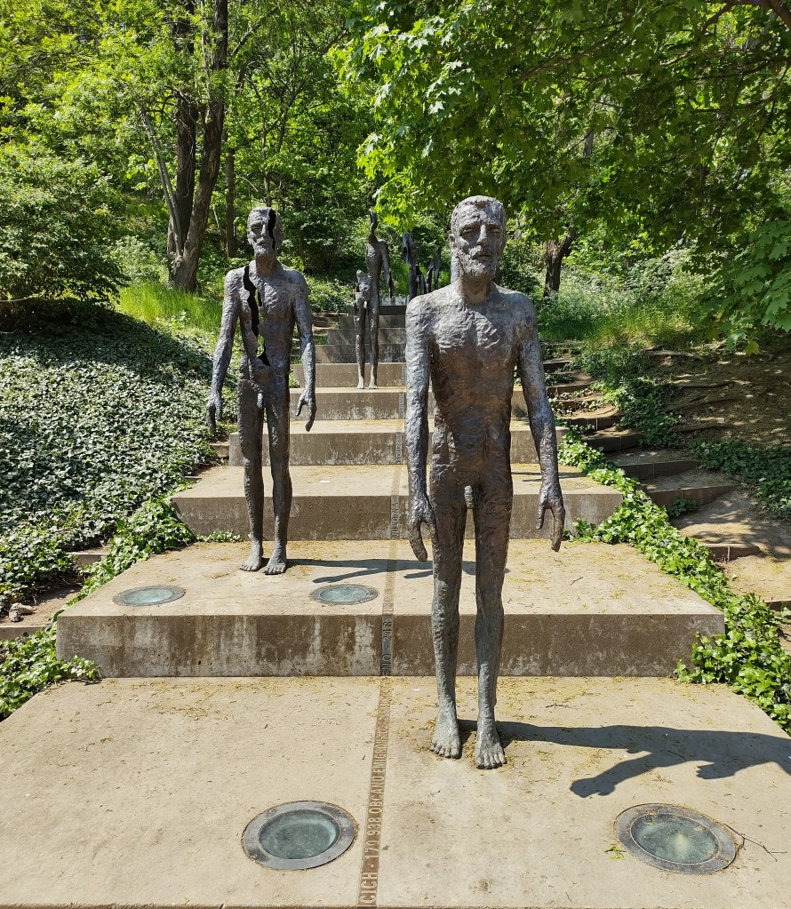 Queste statue trasmettono un messaggio veramente molto pesante. Alla sua base puoi vedere una scalinata sulla quale scendono sette figure.