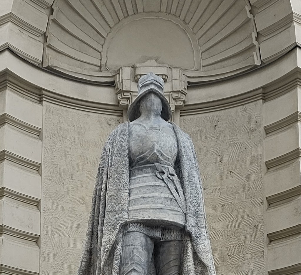 Chi ha detto che Iron Man è un personaggio dei tempi nostri? Questa scultura di Ladislav Saloun, è molto interessante. Il cavaliere senza volto che si trova sul lato del municipio di Praga racconta un’altra storia di fantasmi.