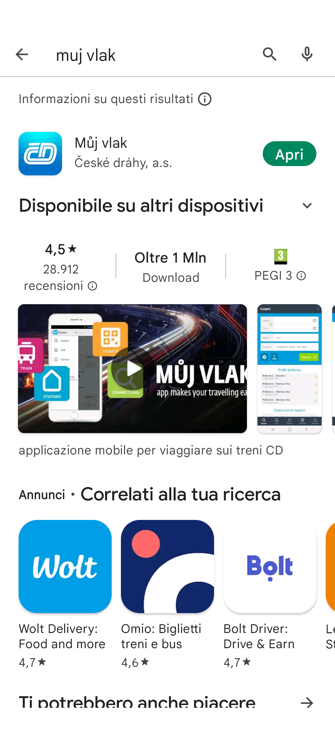 Come prima cosa, dal tuo App store cerca l’applicazione Muj vlak e installala sullo smartphone oppure tablet.