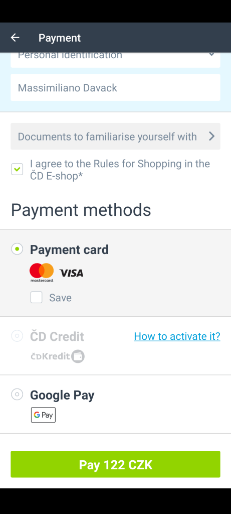 Ora sei nella sezione dove devi selezionare il tuo metodo di pagamento. Spunta quello che desideri, spunta “I gree to the Rules for Shopping in the CD E-Shop” e vai avanti.