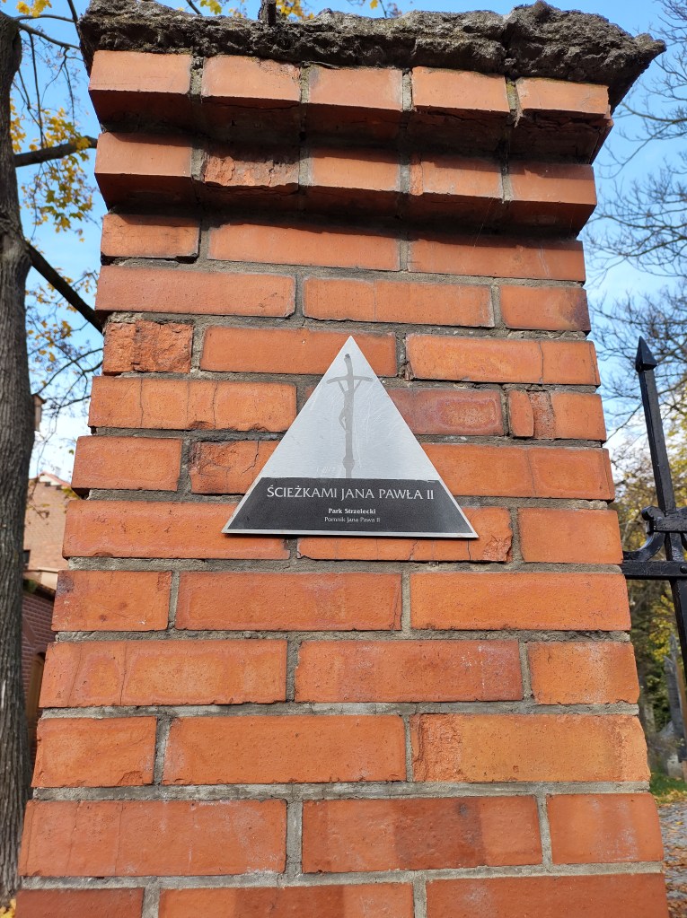 Potresti cominciare la tua passeggiata vedendo il busto di Giovanni Paolo II situato su un piccolo tumulo e contornato da moltissime targhe commemorative che riportano date ed eventi a lui collegati.