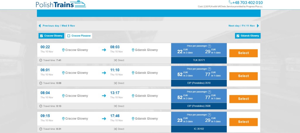 Fai attenzione: Le Prenotazione dei biglietti per i collegamenti polacchi sono disponibili solo 30 giorni prima della partenza.