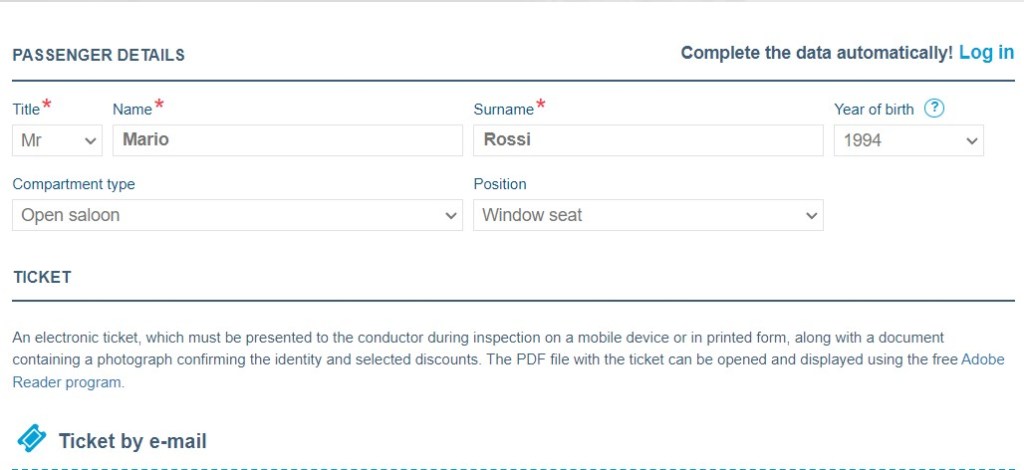 Attenzione: nel campo “Compartment type” seleziona che tipo di compartimento vuoi come per esempio compartimento con tavoli, compartimento chiuso ecc. Nel campo “Position” seleziona se vuoi un posto vicino al finestrino oppure un sedile centrale. Come detto a inizio post, non hai la possibilità di scegliere il numero del posto.