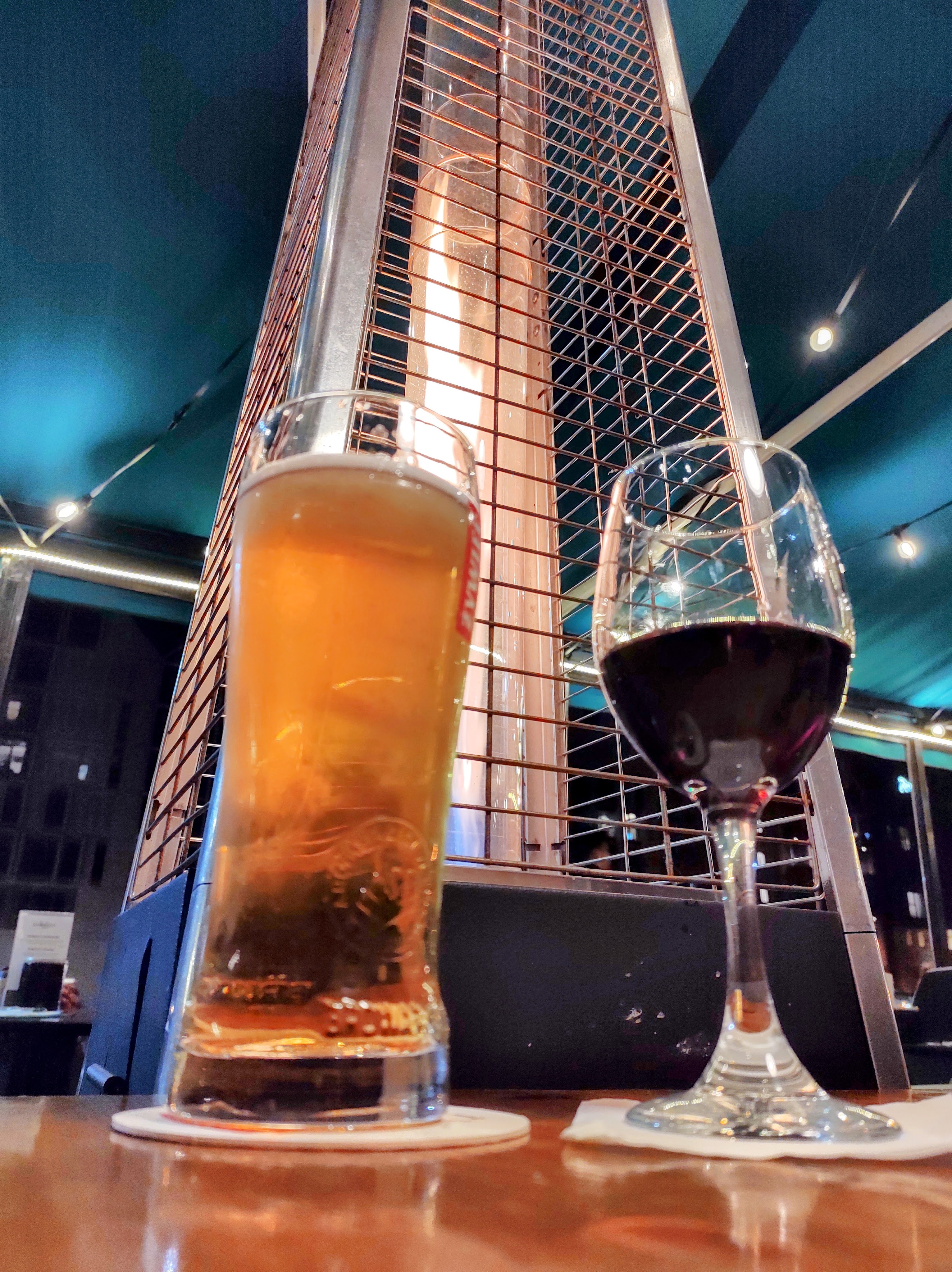 Un buon bicchiere di vino rosso pugliese e un grande boccale di birra tutto polacco. Eccellenti.