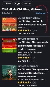 Se decidi di prendere i tuoi biglietti sull’app di Get Your Guide, dopo aver messo nel campo delle ricerca “spettacolo delle marionette a Ho Chi Minh”, scegli la prima opzione che compare, vedi foto.