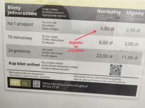 Come puoi vedere dalla fotografia, il biglietto che interessa a te, è il primo della lista “For one ride – 4,80 zt”.