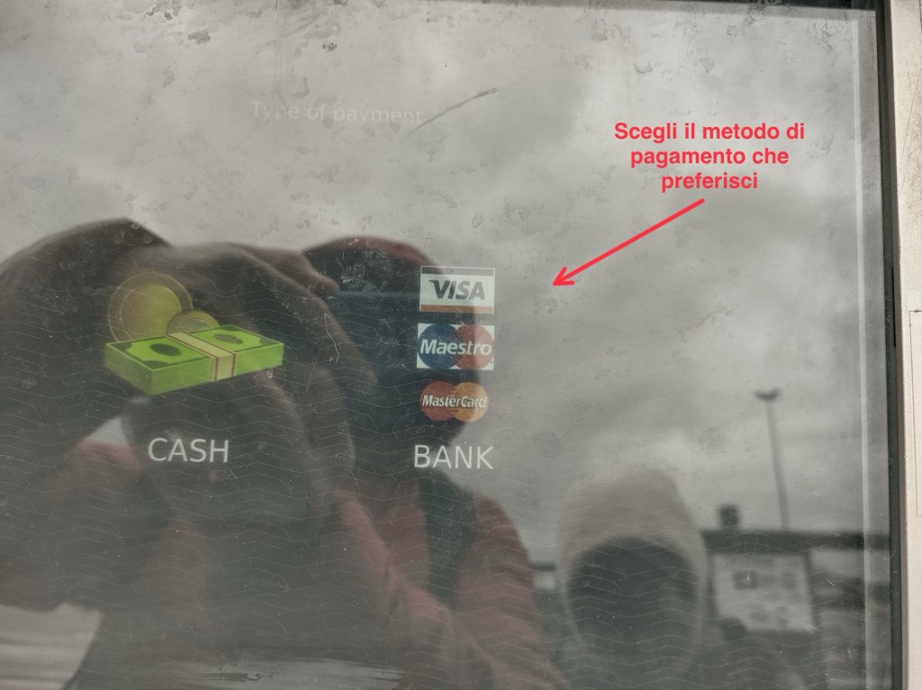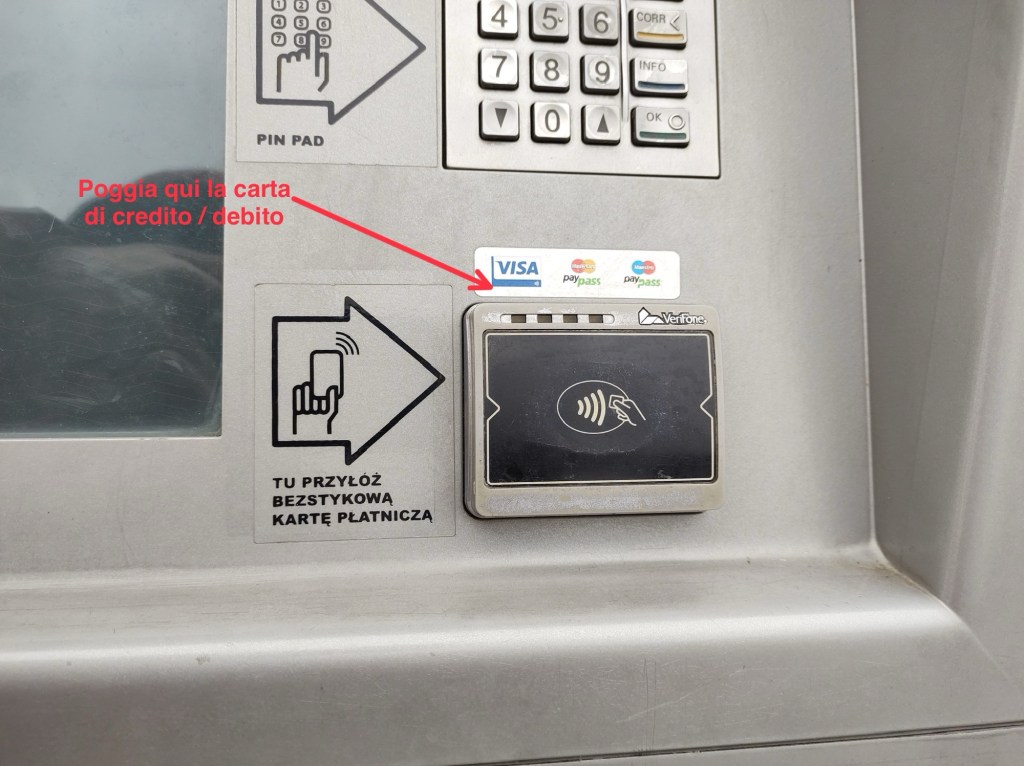 Fatta la tua scelta, se userai la carta di credito, poggiala sulla placca nera che si trova sulla parte destra sotto al tastierino.