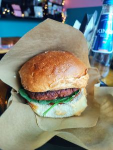 Anche il Vegaburger è un’esplosione di sapori. In formato pressoché gigante, il panino viene farcito con carne vegana, cipolla rossa, spinaci freschi, ketchup, salsa all’aglio e burro vegano.
