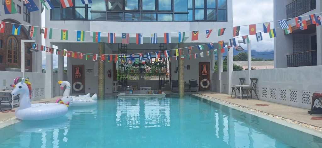 Ben tenuta, offre, oltre a una bella veduta sulle montagne di Chiang Mai, tavoli con sedie, lettini, docce, un angolo bar e diverse prese elettriche dove poter, all’occorrenza, ricaricare il proprio smartphone o tablet.