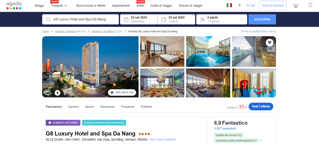 Altra cosa che vorrei suggerirti di fare è quella di leggere anche tutte le schede che riguardano le camere, i servizi offerti dall’hotel, le recensioni, la posizione e le politiche della struttura.