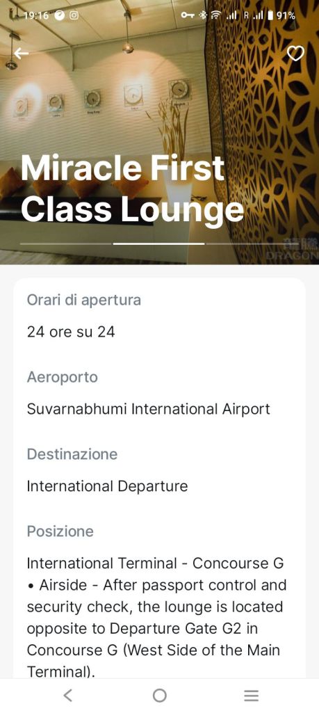 Abbiamo visto in questo post la Miracle Lounge situata nel settore “G” dell’aeroporto di Bangkok Suvarnabhumi. Una sala business elegante, ricca di comfort e di delizie sia da mangiare che da bere. Se intendi seguire il nostro consiglio, cioè quello di concederti una coccola mentre aspetti il tuo volo di ritorno da Bangkok, ora sai dove puoi entrare.