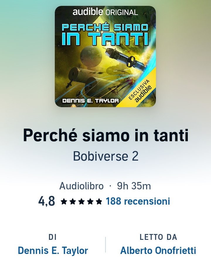 “Perché siamo in tanti” è la seconda parte della serie originale Audible Bobiverse, che ha venduto fino a oggi più di un milione di copie.