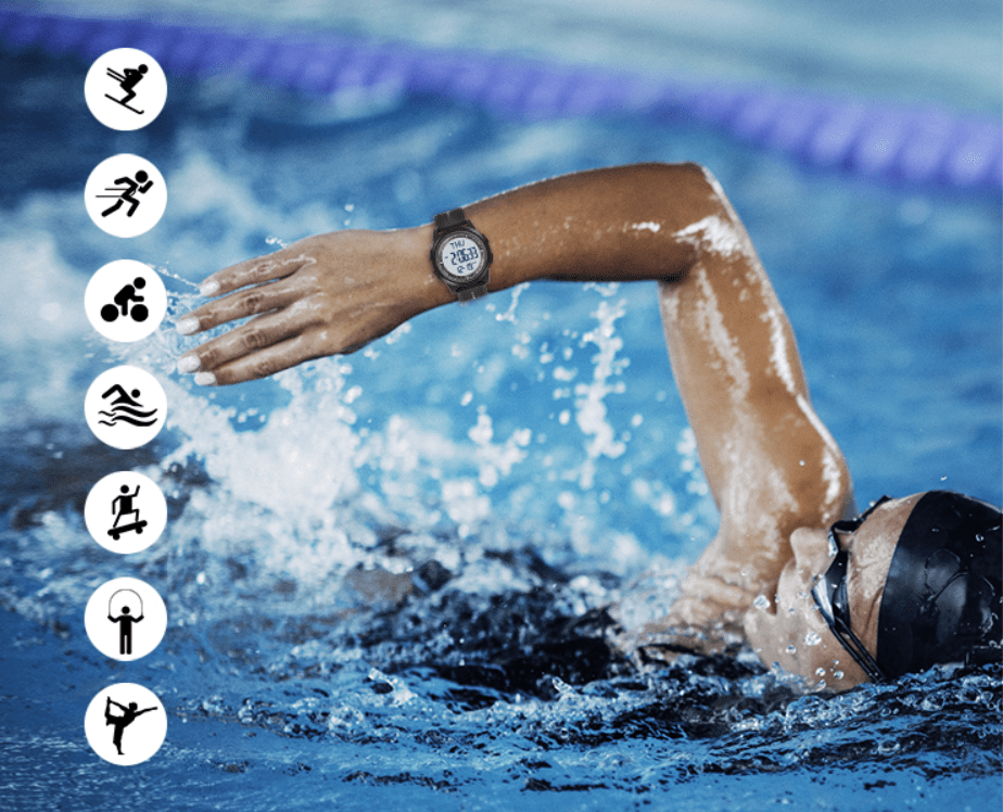 Anche il WIFORT è resistente all’acqua, ha il doppio fuso orario, la funzione di conto alla rovescia, il cronometro, il calendario, la funzione di promemoria ed è retroilluminato. Grazie alla sua resistenza all’acqua, non avrai problemi sotto la pioggia, tanto meno quando ti tufferai in qualche bel lago o piscina. In effetti, il WIFORT è stato progettato per arrivare fino a 50 m di profondità. Il suo cinturino in silicone rimane flessibile e morbido.