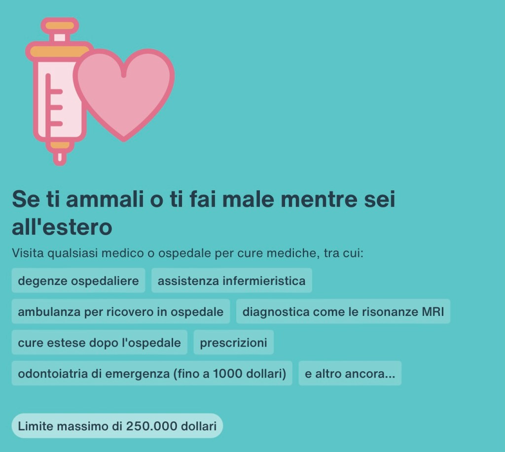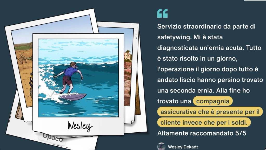 Volendo, puoi attivarla anche se sei già all’estero senza problemi e questo, credo che sia un grande vantaggio. Con SafetyWing non dovrai comunicare in anticipo la tua destinazione, una volta attivata la polizza sanitaria viaggio sarai coperto ovunque tu vada.
