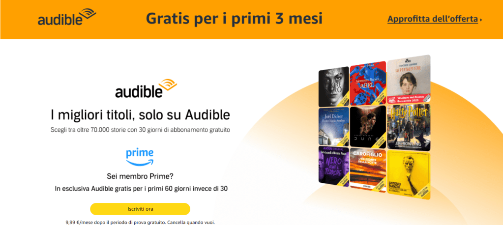 Amico mio, se sei arrivato fino a qui, cosa stai aspettando? Clicca su questo link e abbonati ad Audible anche tu. Se ti piace leggere, vedrai che anche tu, come me, non ne potrai fare più a meno.