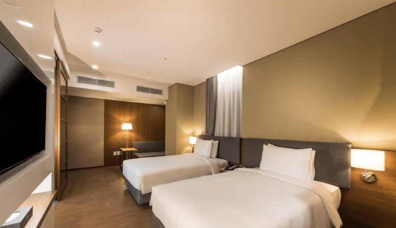 L’hotel offre una serie di servizi che lo rendono adatto sia a chi viaggia per piacere che per lavoro. Oltre a un ristorante italiano, sono presenti una palestra ben attrezzata, una piscina e una sala per meeting. La nostra Camera Doppia Deluxe con Letti Separati (Deluxe Twin Room) era spaziosa, ben arredata e dotata di tutti i comfort necessari: un angolo bar, bollitore con caffè e te, una cassaforte, un televisore al plasma, prese elettriche ben posizionate, aria condizionata e una vista spettacolare sulla città. La connessione Wi-Fi era stabile e veloce, perfetta per lavorare o navigare durante il soggiorno.