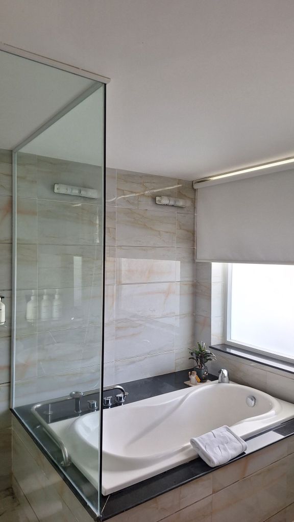 Siamo stati accompagnati sulla terrazza in riva al mare, dove ci è stato servito un tè caldo accompagnato da un elegante vassoio a due piani ricco di dolci, sandwich, tartine salate e gamberi fritti. Un’accoglienza curata nei dettagli che trasmette subito la filosofia del resort.