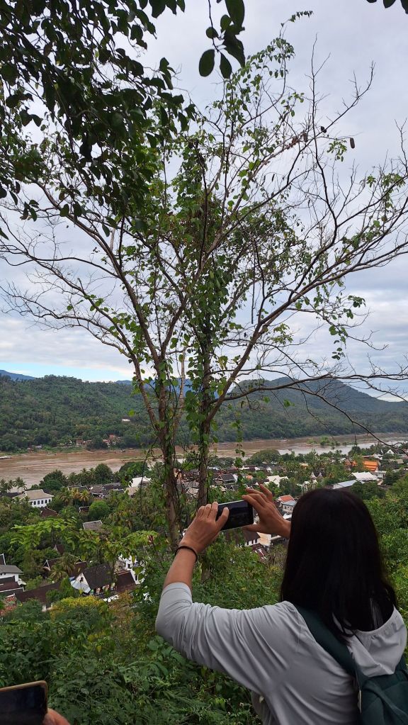 Per raggiungere la sommità servono 300–350 gradini, ma la fatica è contenuta e ampiamente ripagata da una vista a 360° su Luang Prabang, sulle montagne circostanti e sul lento scorrere del Mekong.