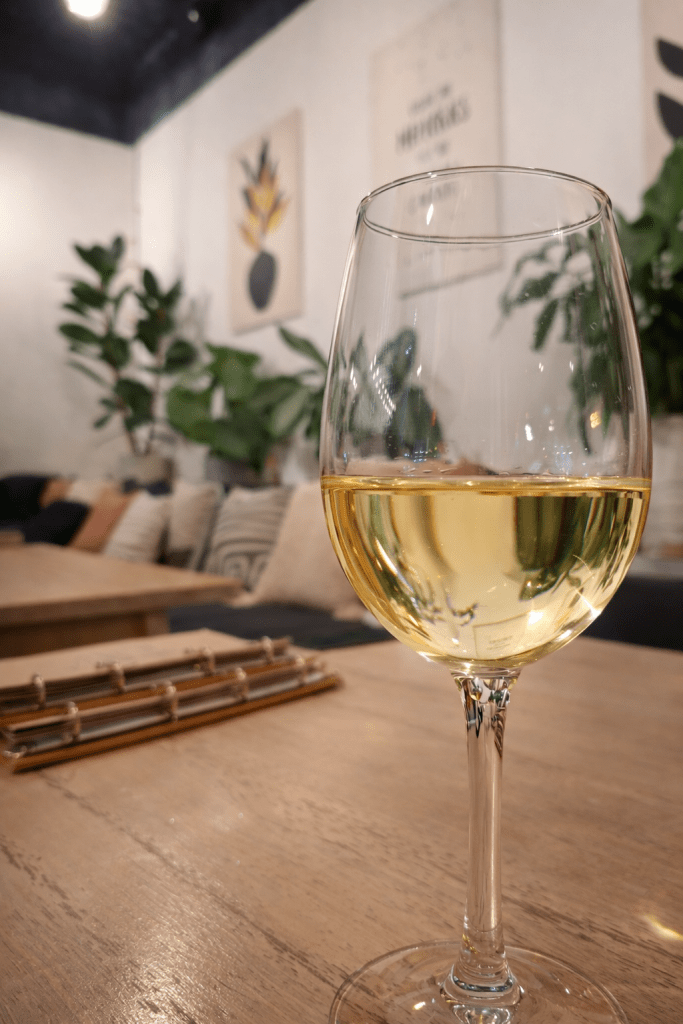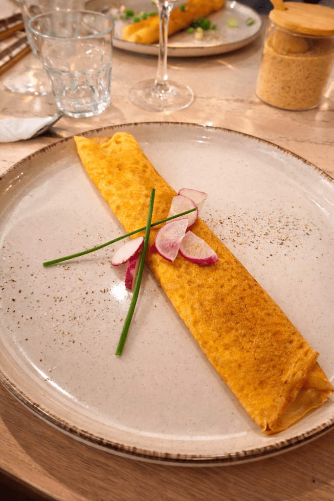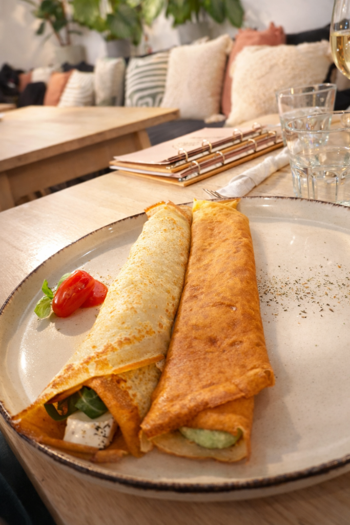 A completare il tutto, abbiamo bevuto due calici di vino bianco locale, fresco, profumato e sorprendentemente buono. Un abbinamento perfetto per esaltare i sapori dei pancake salati.