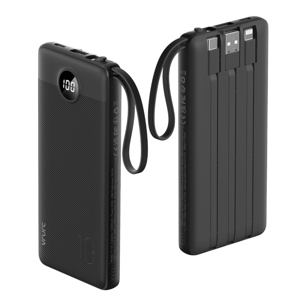 VRURC Power Bank 10.000mAh – Con Cavi Integrati e Display LED